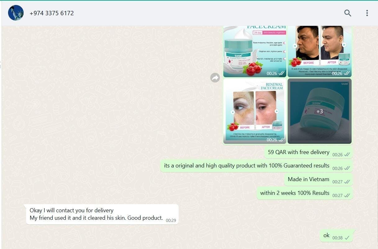 - SAAM Renewal Face Cream – Authentic and exclusive product of SAAM Cosmetics, best seller in Saudi Arabia and UAE. It can treat all long-term skin problems such as melasma, freckles, age spots, and dark spots. Experience this face cream product of SAAM!